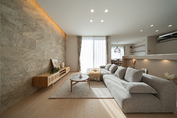 白を基調としたデザインとやわらかな間接照明で家族のやすらぎの場所が実現するリビングです✨