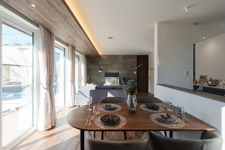広々とした庭を望む大きな窓で、明るく開放的なLDKを実現。家族の時間を豊かに彩ります。