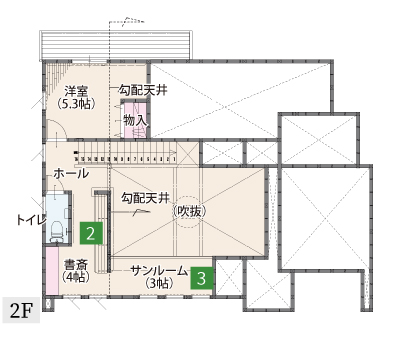 トップ > ブログ > ノーブルホームつくば店 > 【商品紹介】平屋と二階建てのいいとこどり!1.5階の魅力 > 三原まちかど間取り図2F